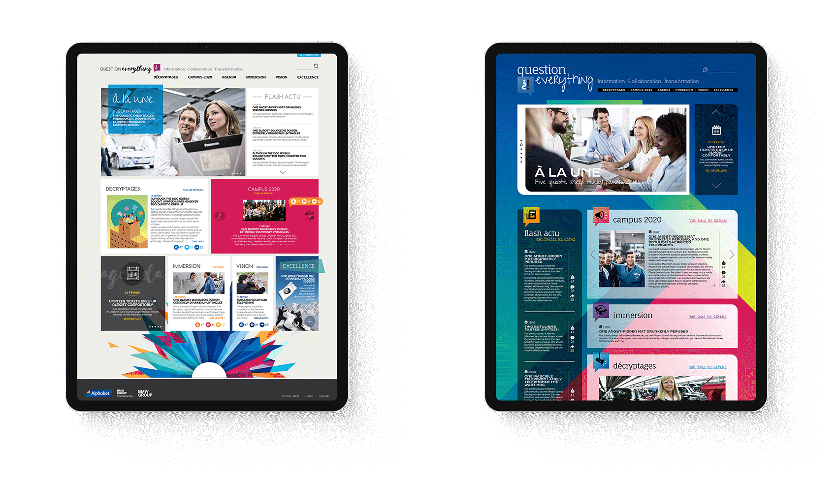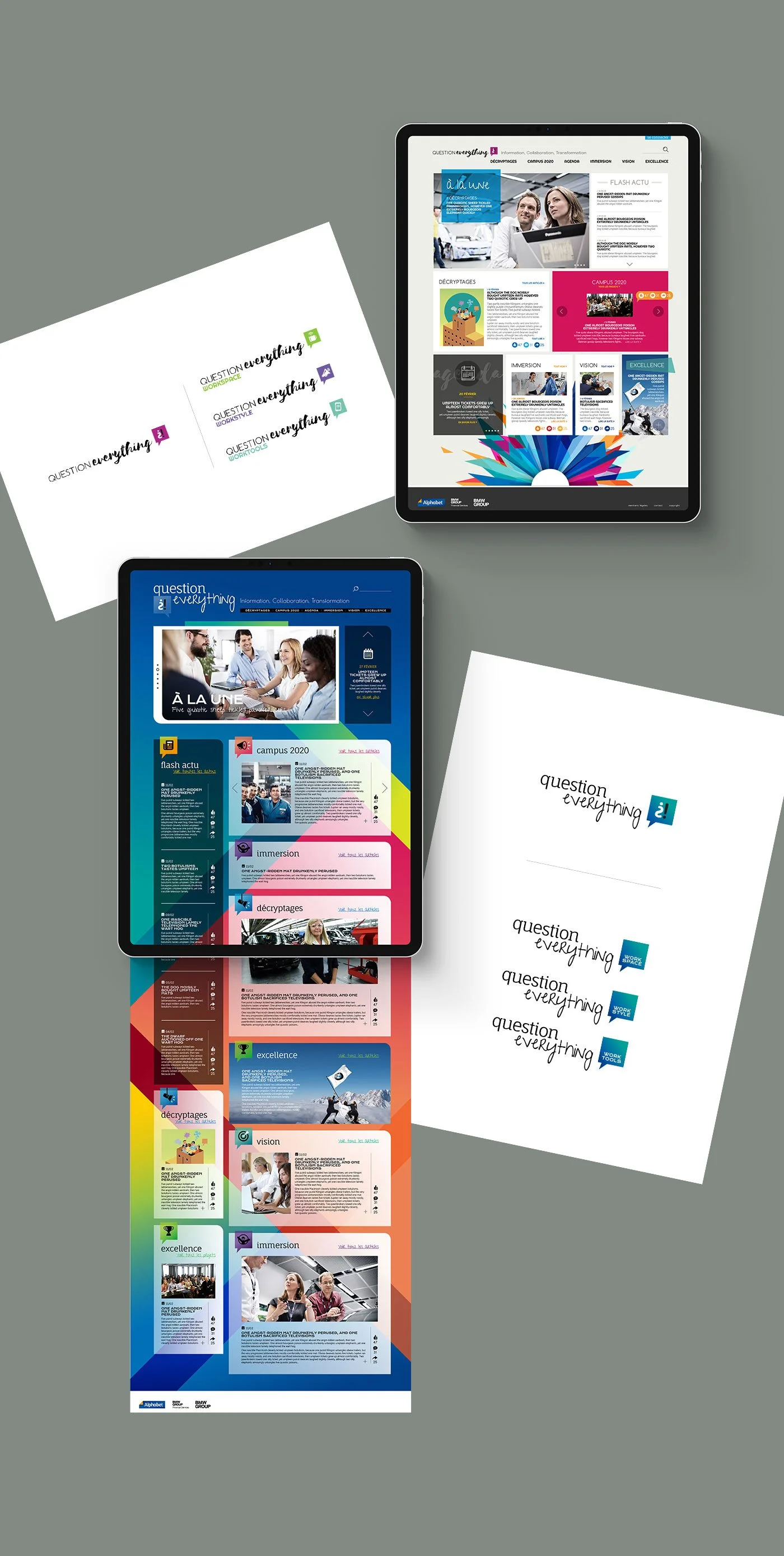 Creazione d’un identità visiva: logo, webdesign del intranet, linee guida e collezione di mezzi stampa e digitale - progetto sviluppato - intranet online per il personale del gruppo in Francia