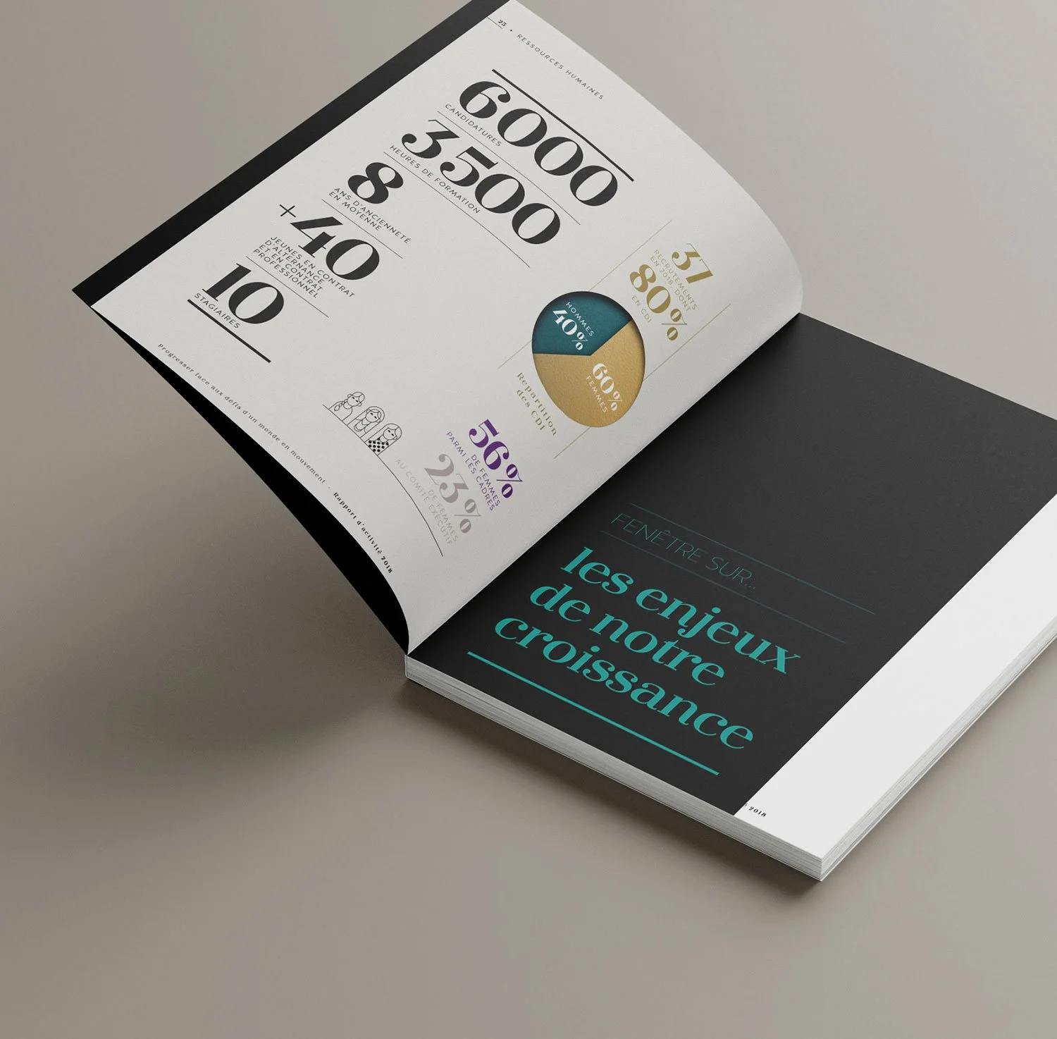 Mises en page sobres, avec beaucoup de chiffres clés et de verbatims pour donner la parole aux collaborateurs.