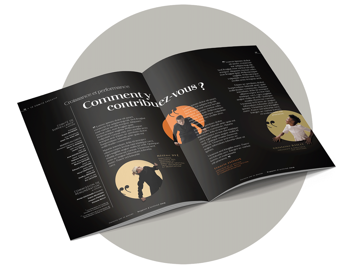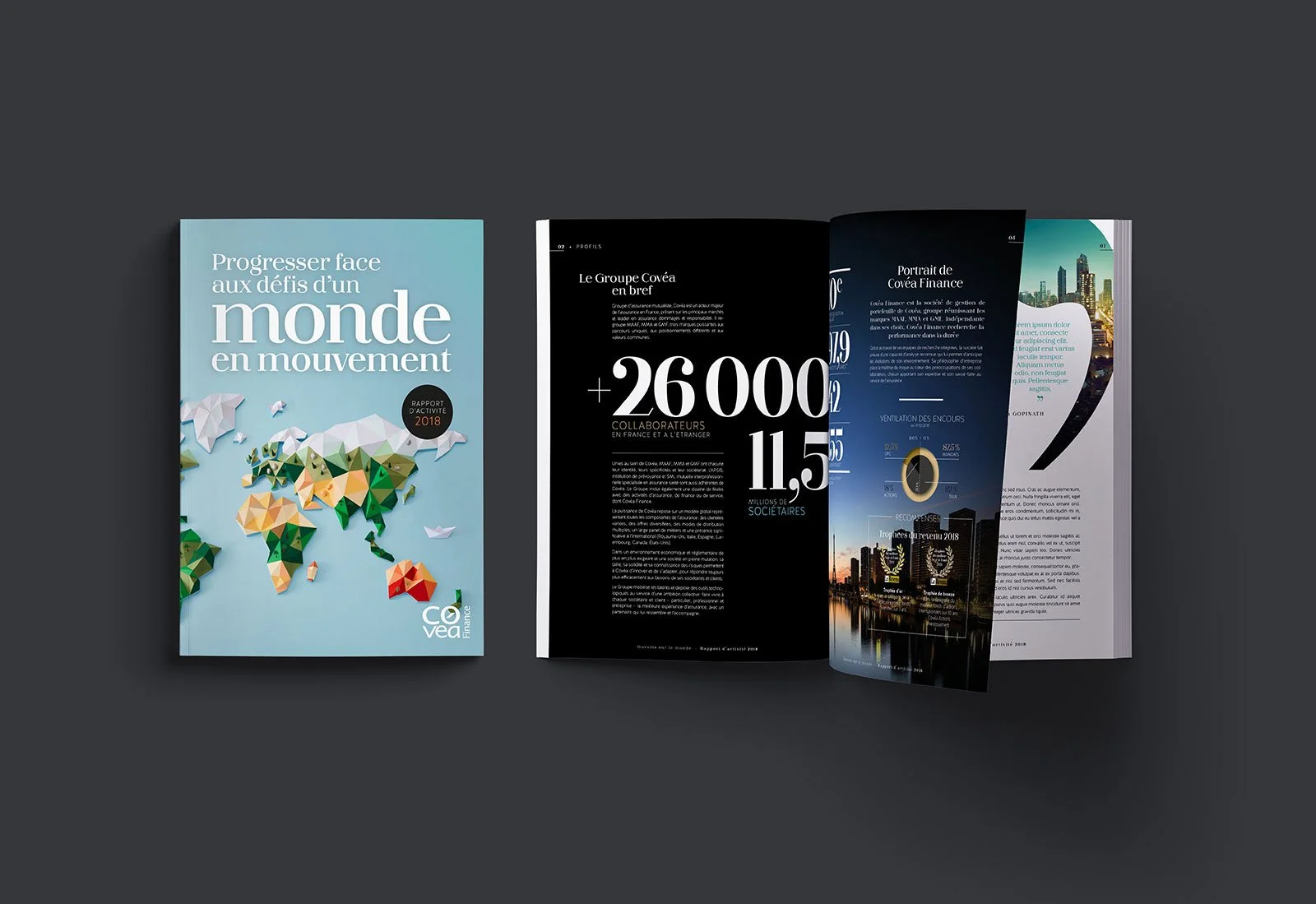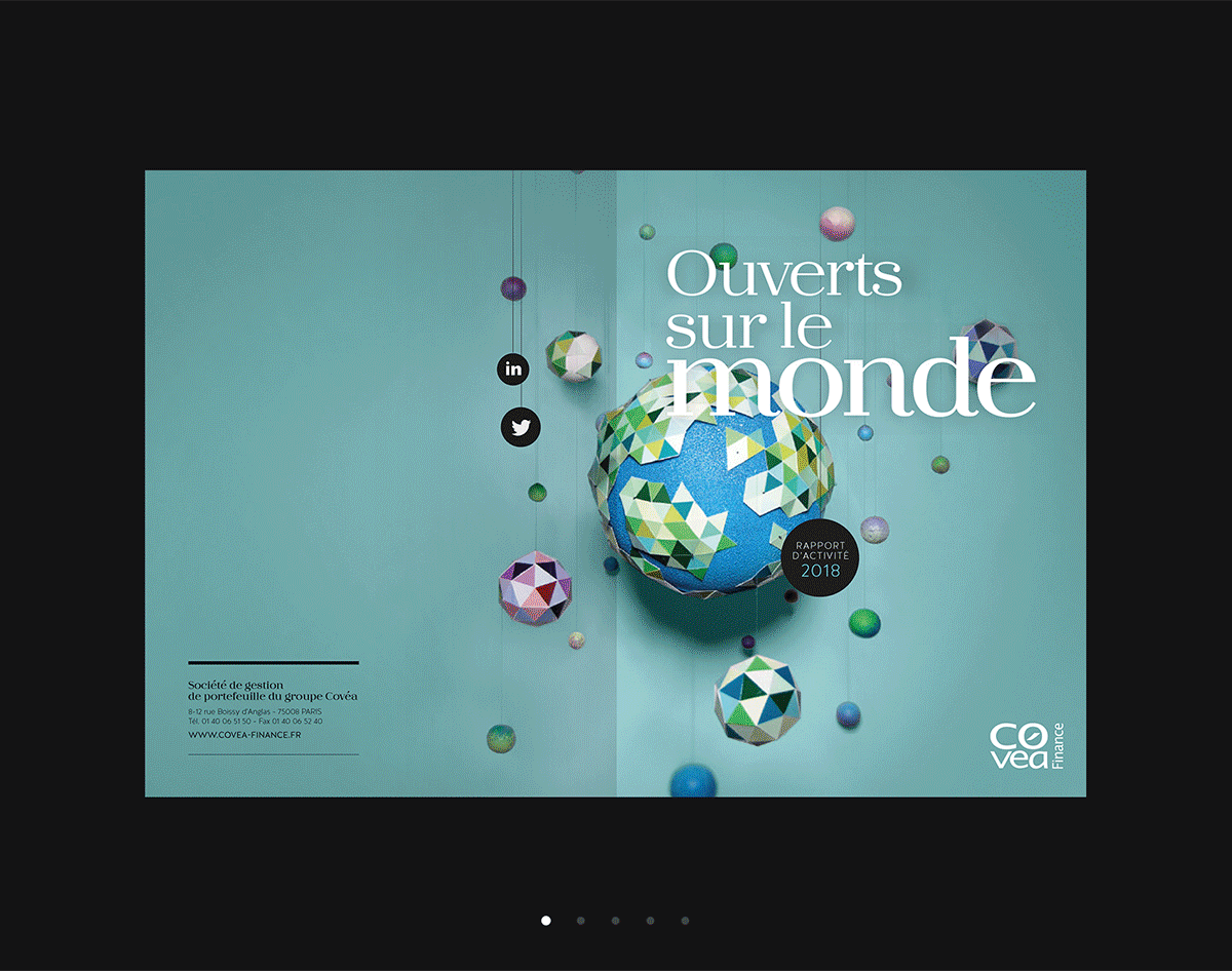 Reprise de ce concept graphique de papiers découpés et superposés pour les graphiques/schémas du rapport annuel.