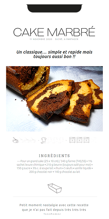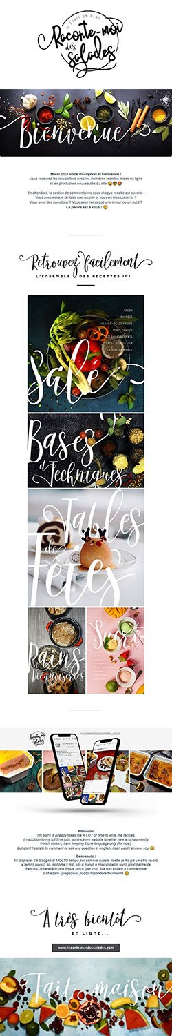 Plateformes de communication : envoi de newsletters quand il y a des nouveautés sur le site (réalisées avec Sendinblue, qui s’appelle désormais Brevo) et page Instagram pour prévenir dès qu’une nouvelle recette est dispo en ligne 😁