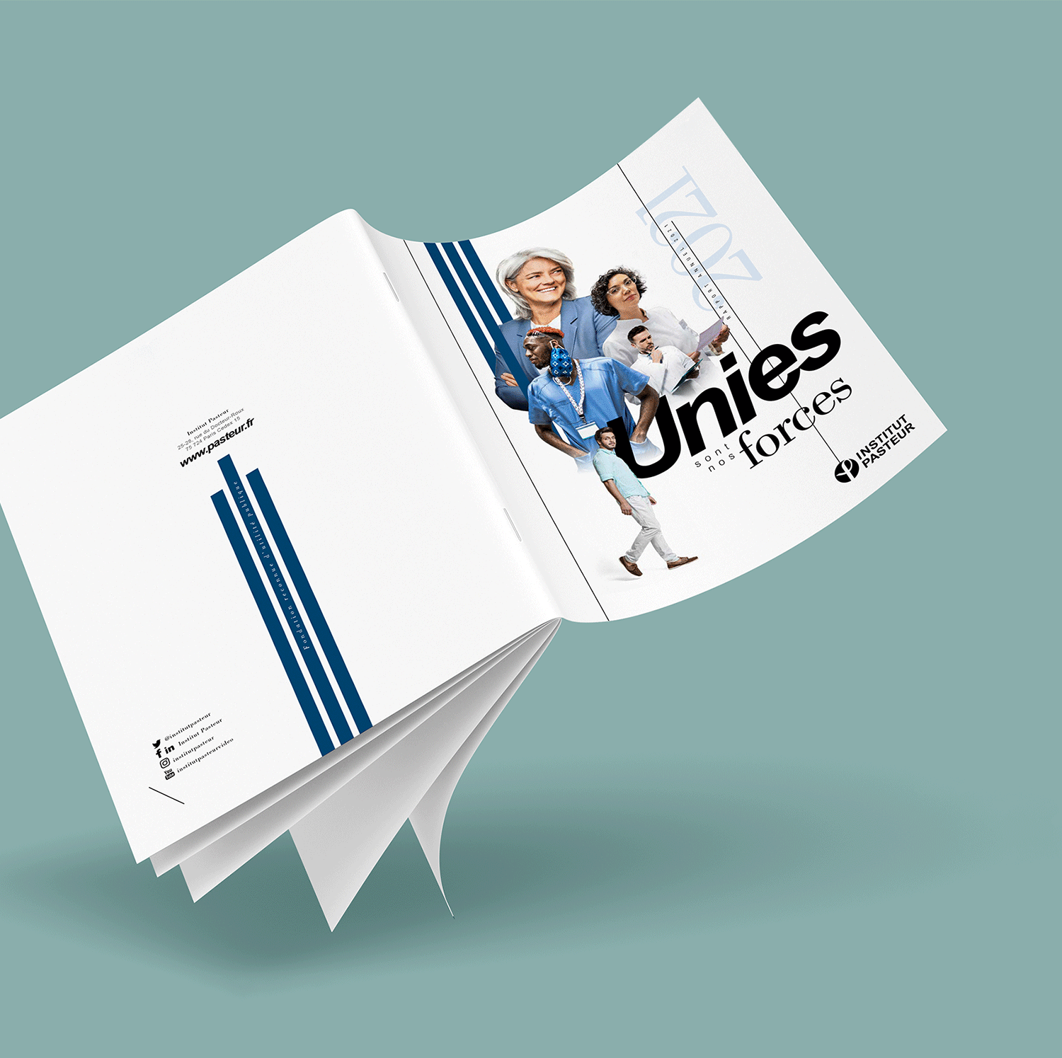 Série de couvertures photos du rapport annuel pour 3 ans et déclinaison d’une couverture graphique pour le rapport financier.