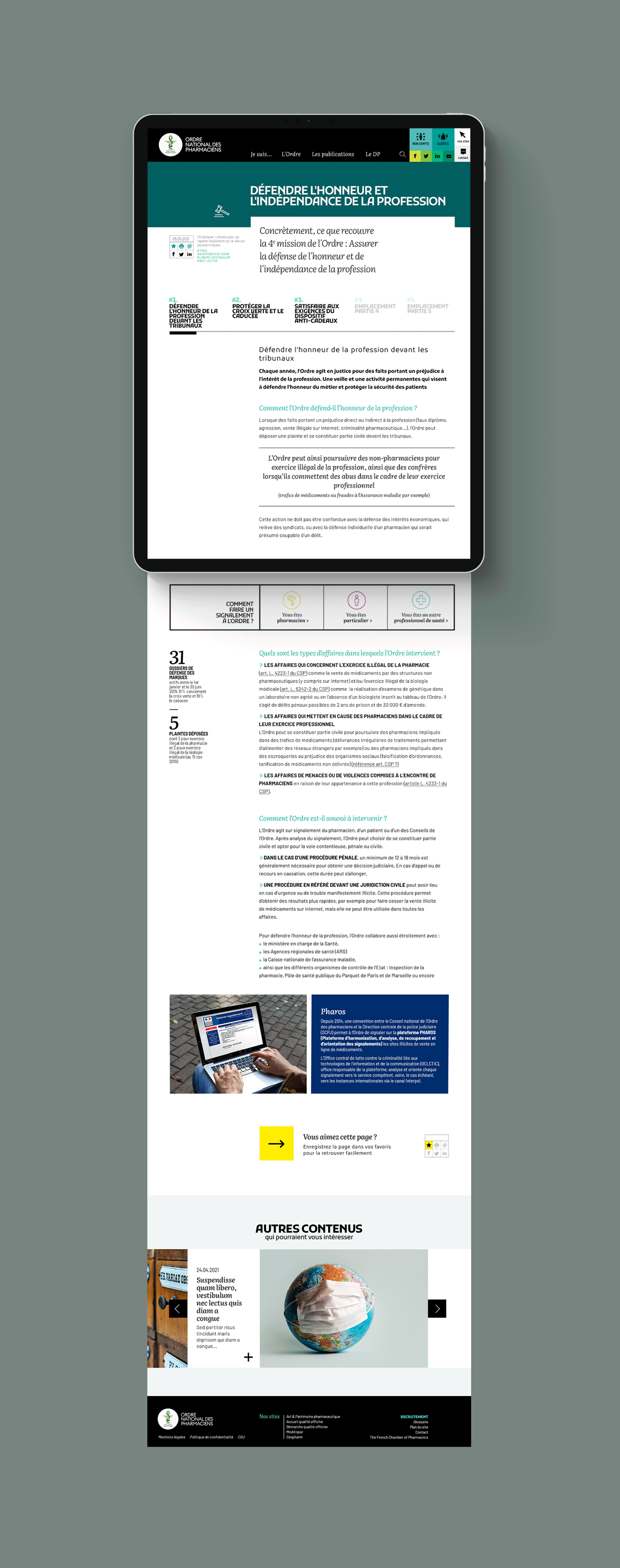 Alternative graphique pour le site et UX/UI design améliorés : menu en colorblock dans le header, sous-menu pour le contenu afin de limiter la hauteur de la page et faciliter la navigation, renvois vers des articles et chiffres clés en évidence et directement accessibles sur la colonne de gauche, encadrés de couleurs, pictos et liens cliquables colorés et bien visibles.