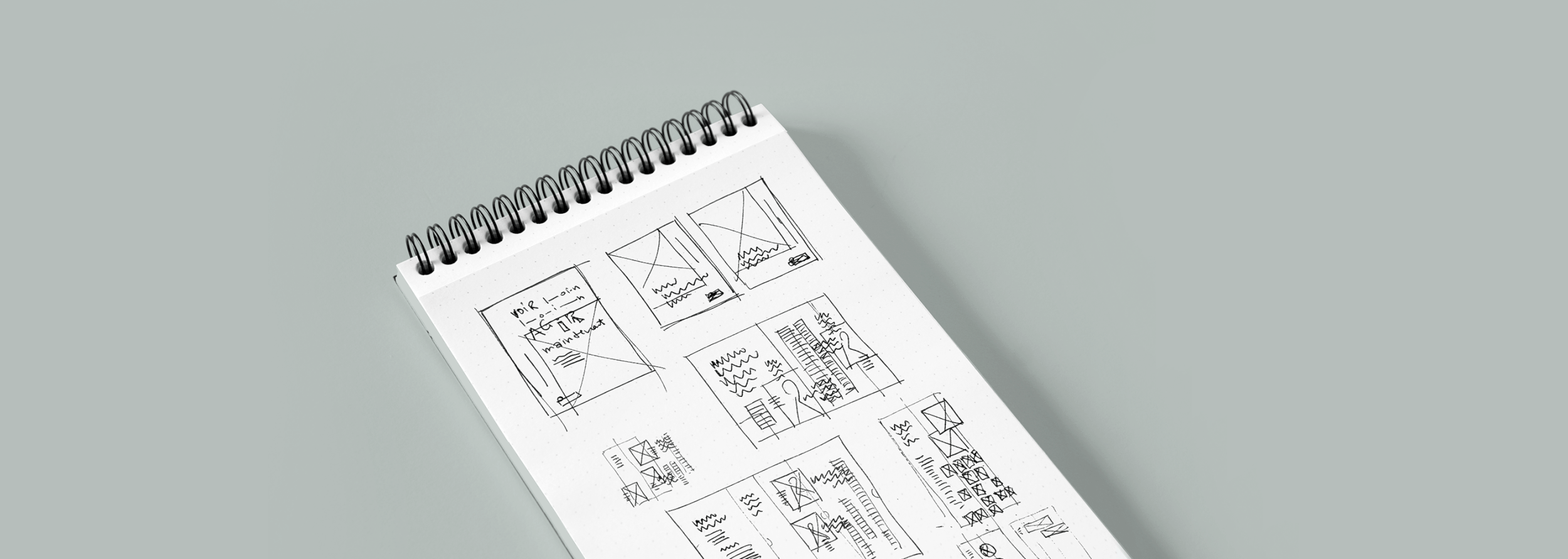 Schizzi preparatori per la concezione della linea grafica delle prime impaginazioni del rapport.