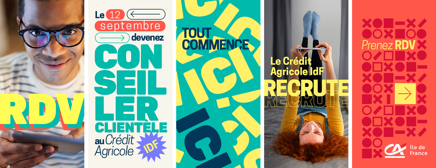 Des jeux typo, des couleurs pep’s et des écrans dynamiques pour une bonne visibilité sur des formats digitaux